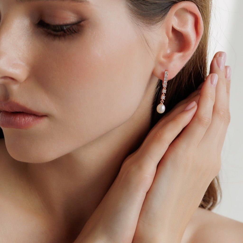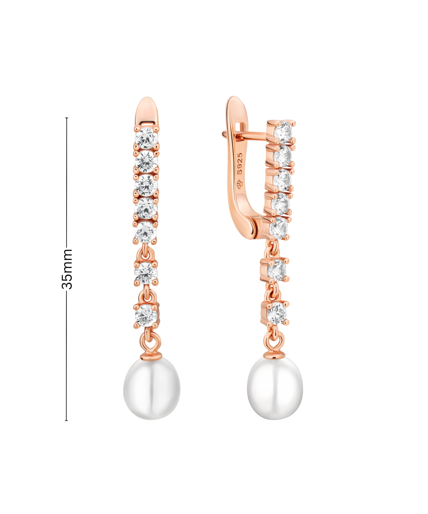 Apzeltīti sudraba auskari ar pērlēm un cirkonijiem