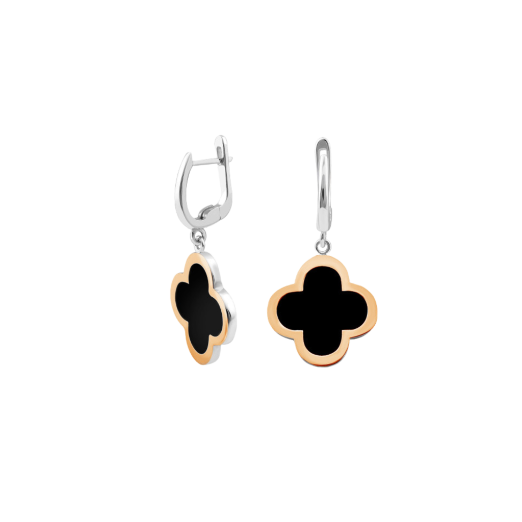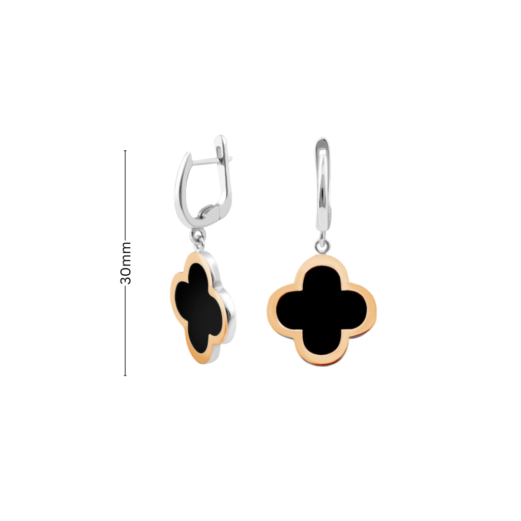 Sudraba auskari, pārklāti ar zeltu un oniksu