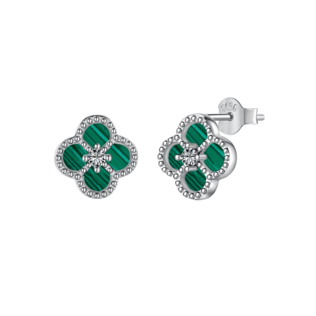Apzeltīti sudraba auskari ar malahītu un cirkoniem