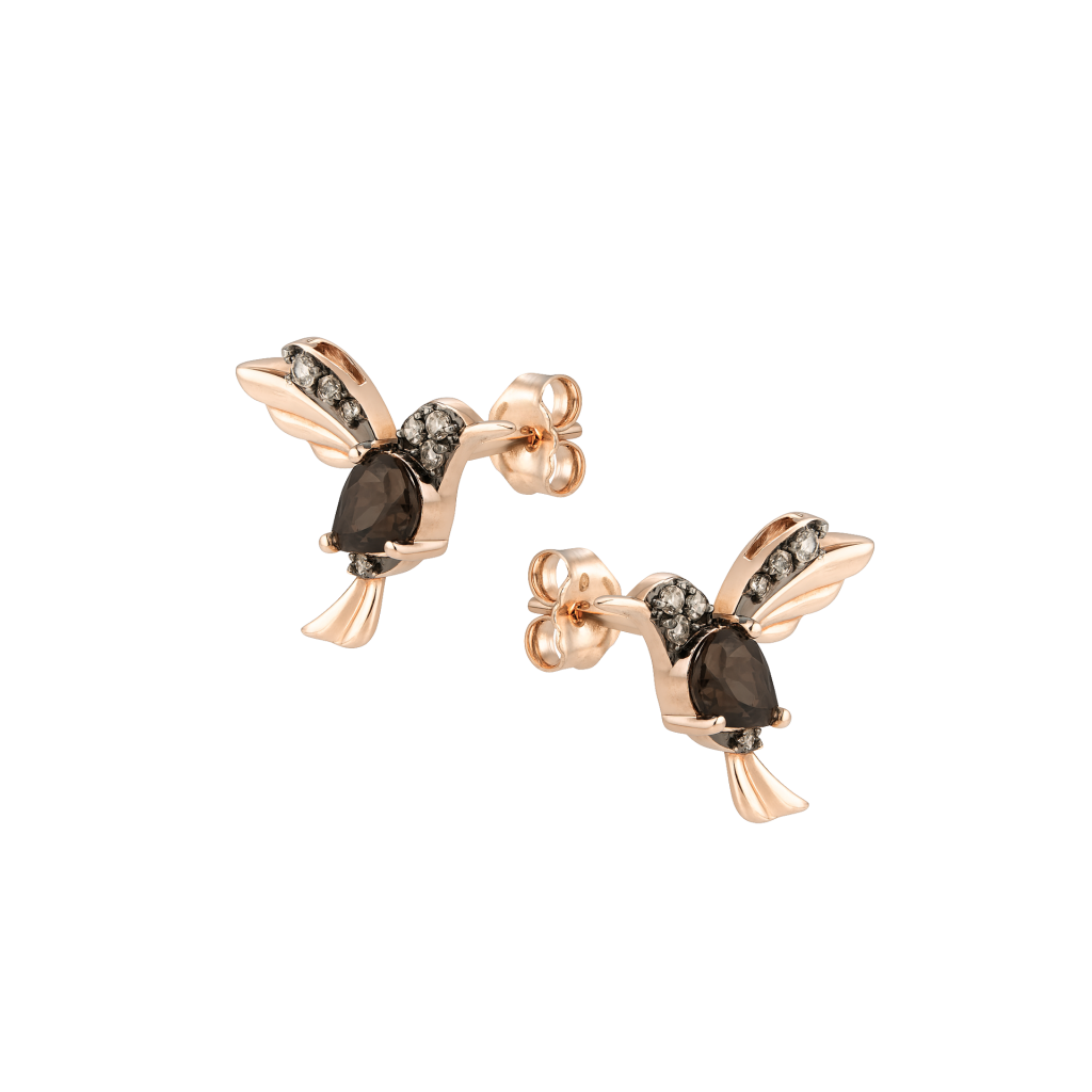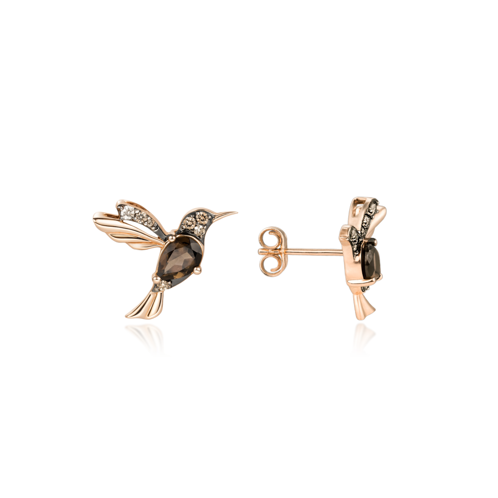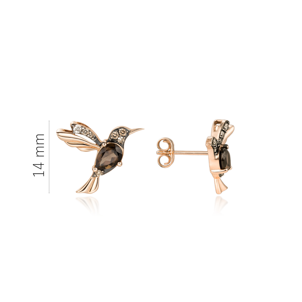 Zelta auskari ar dūmakainu kvarcu un dimantiem