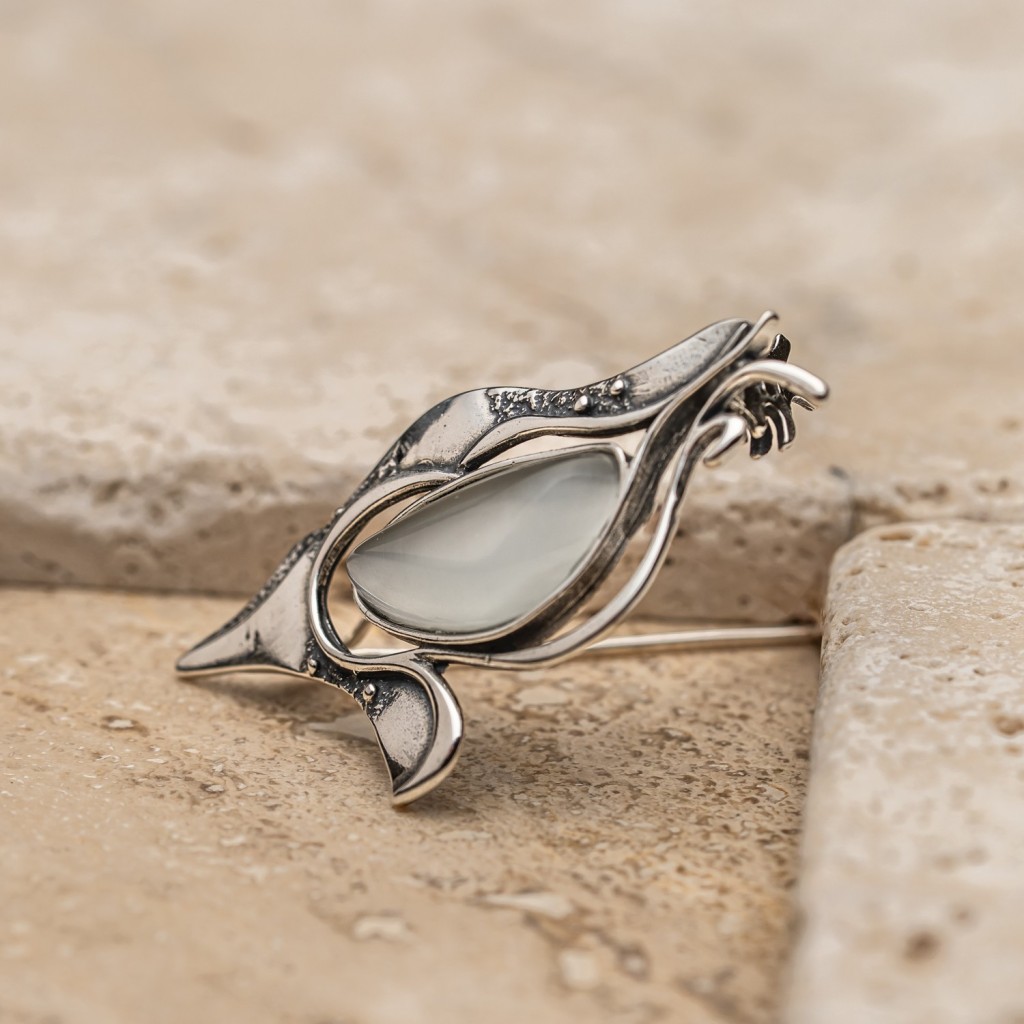 Sudraba sakta ar kaķa acs akmeni