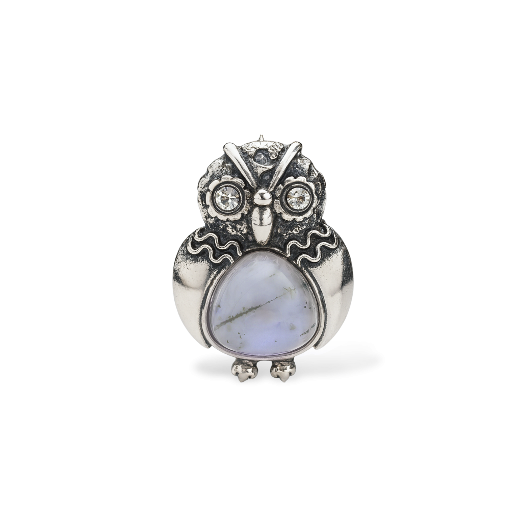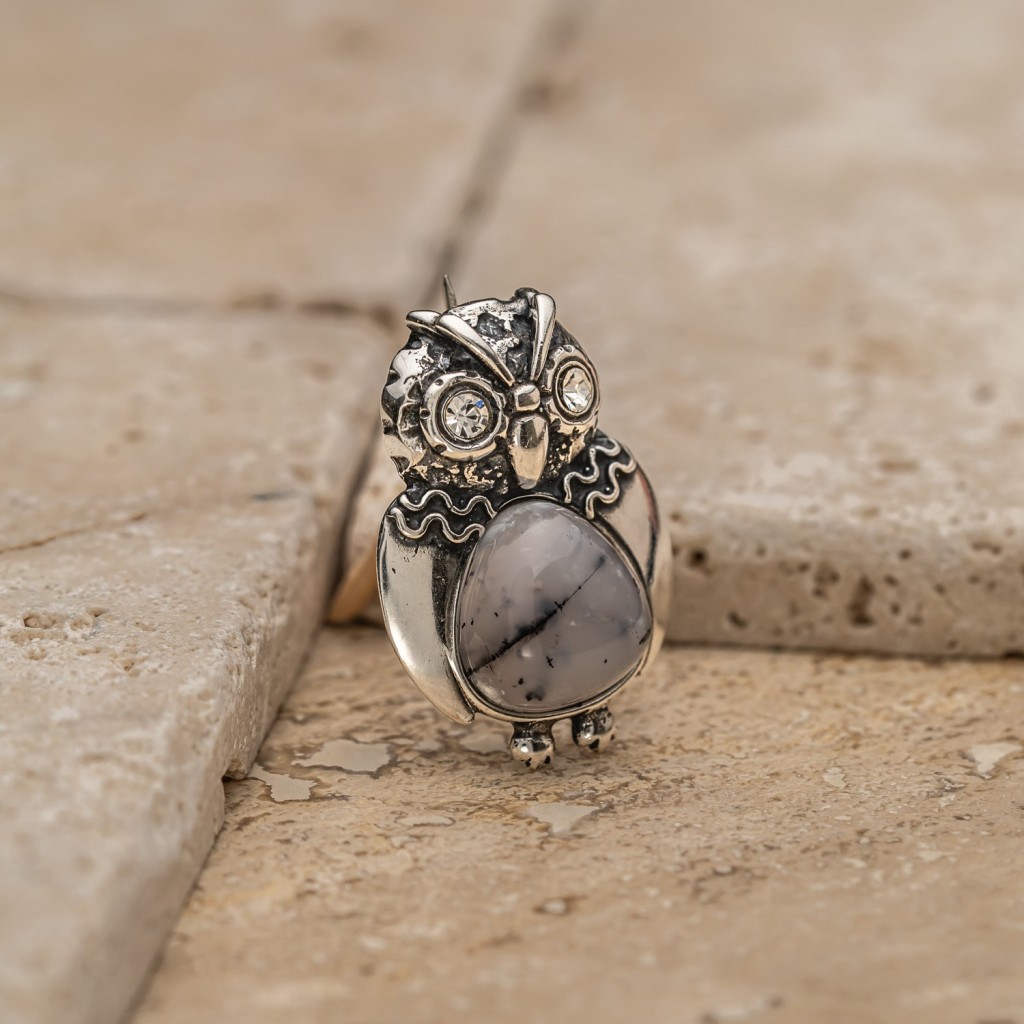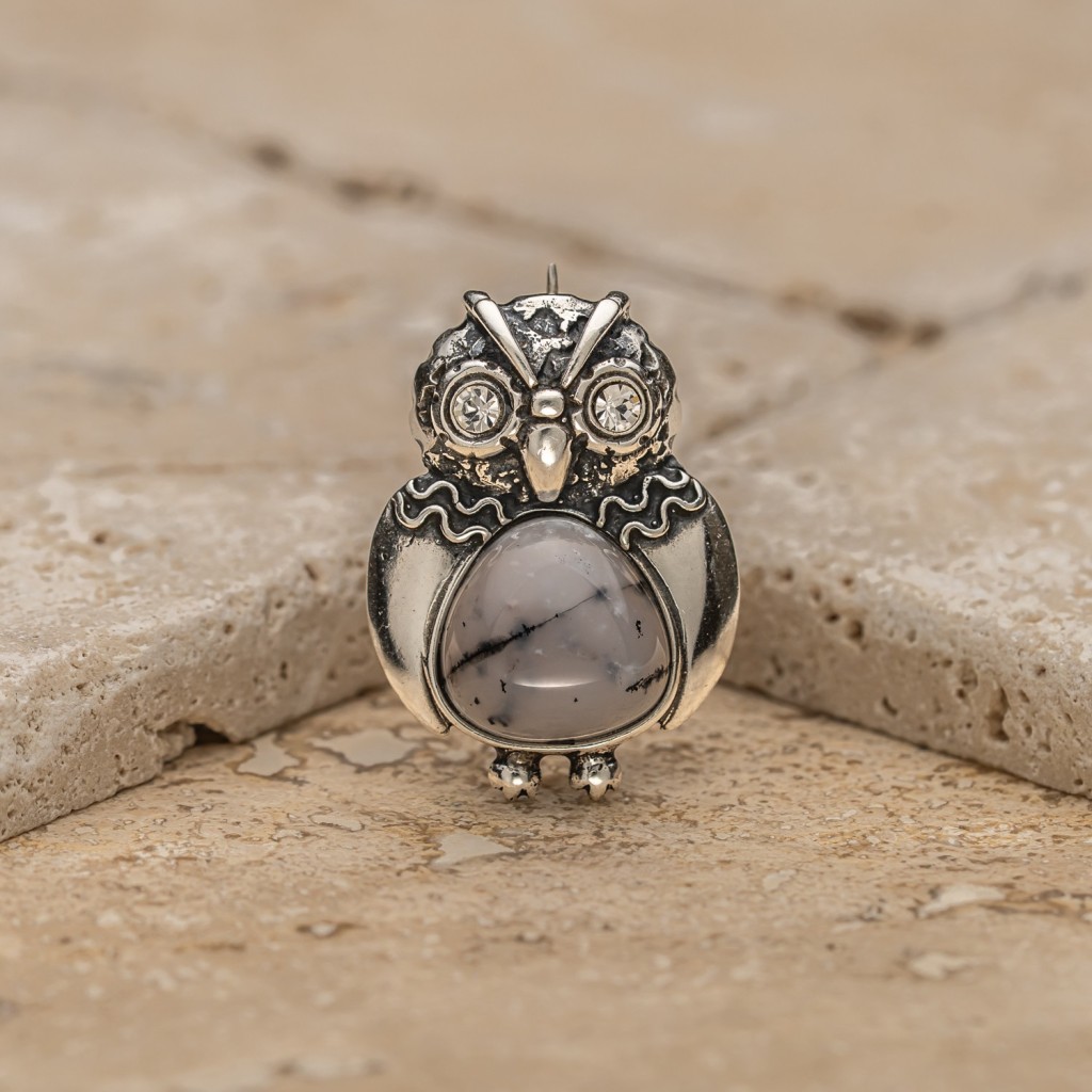 Sudraba piespraude ar ahātu un cirkoniem "Pūce"