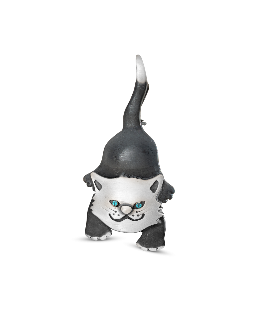 Sudraba piespraude ar kristāliem "Kaķis"