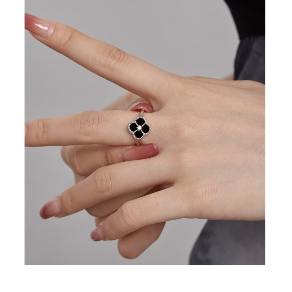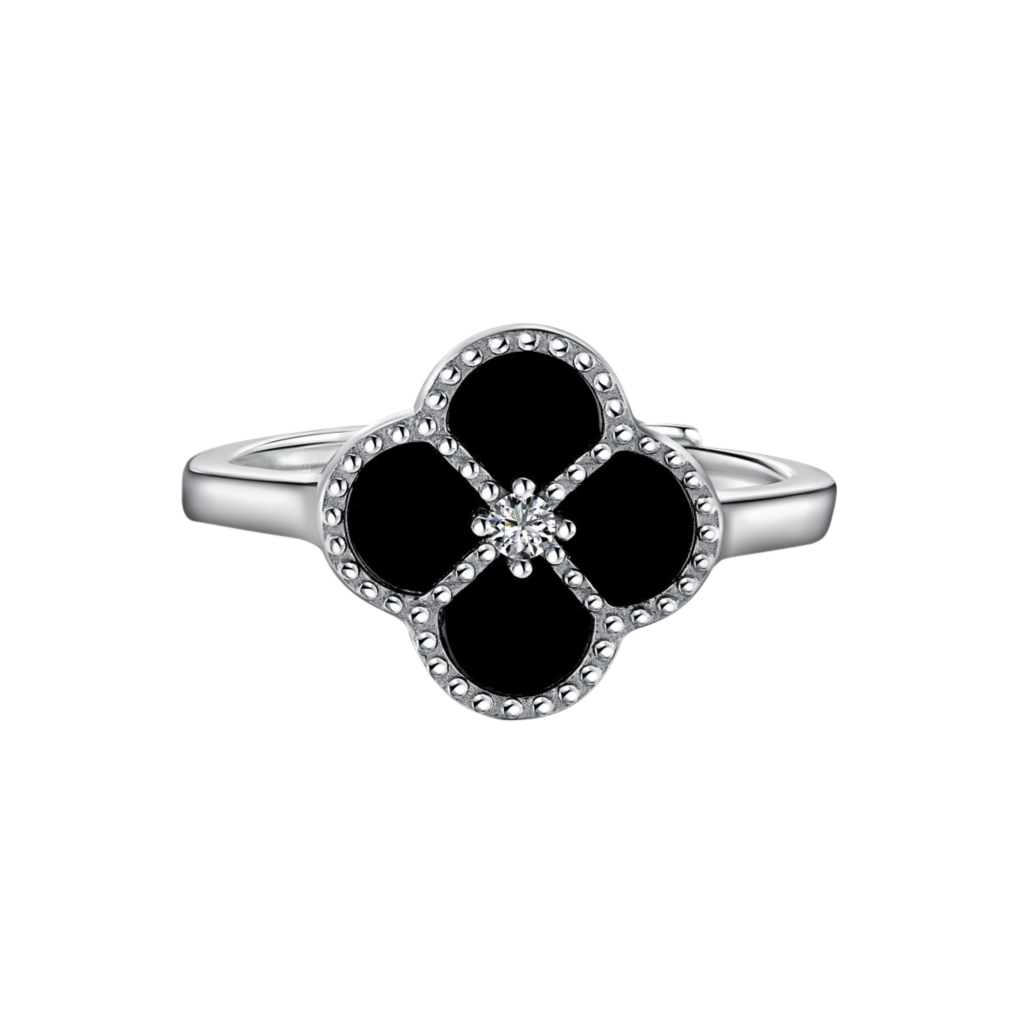 Sudraba gredzens ar oniksu un cirkonijiem