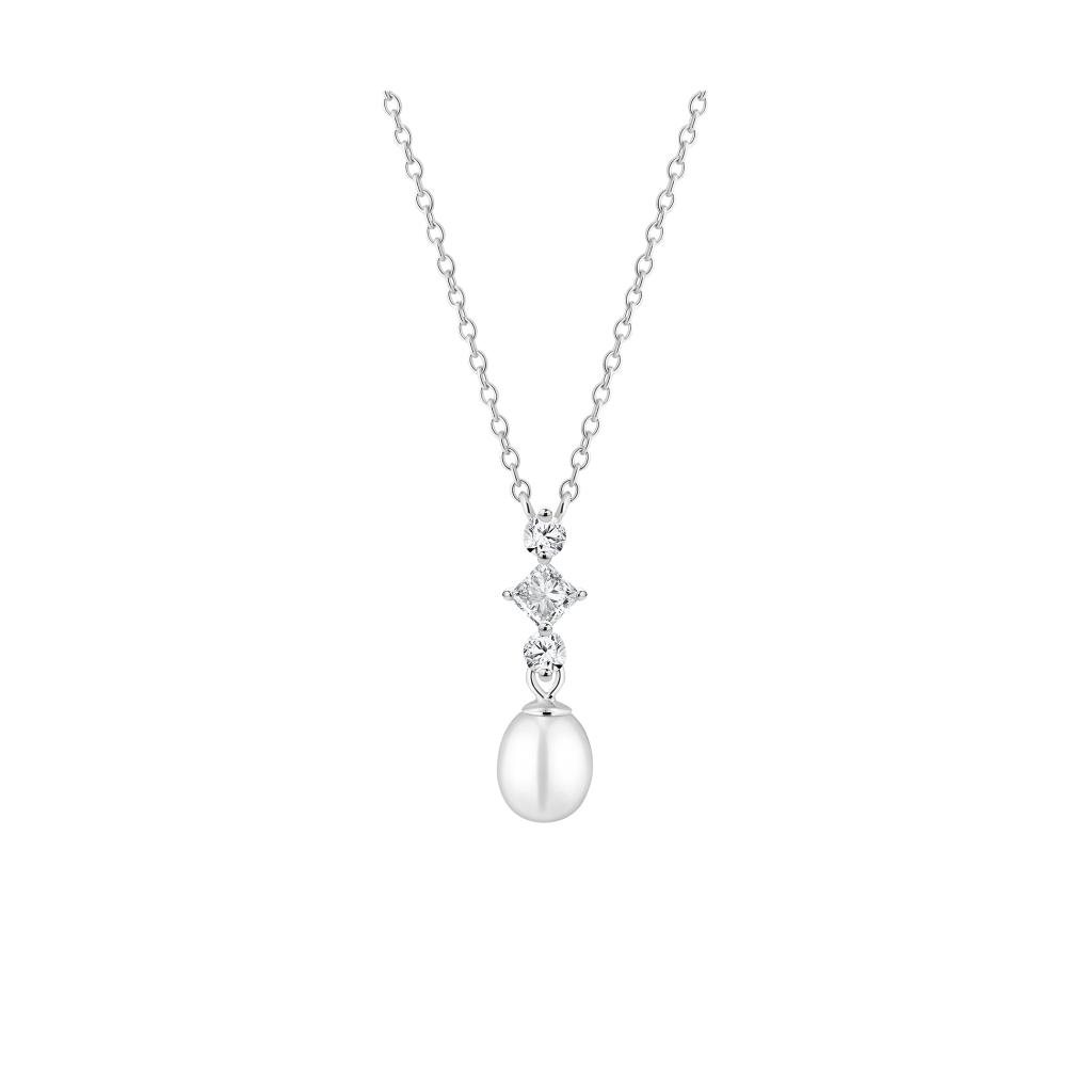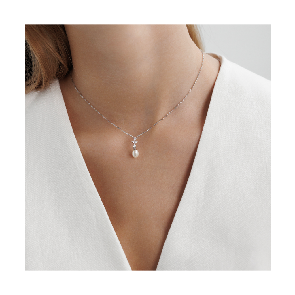 Sudraba ķēdīte ar pērļu piekariņu un cirkonijiem