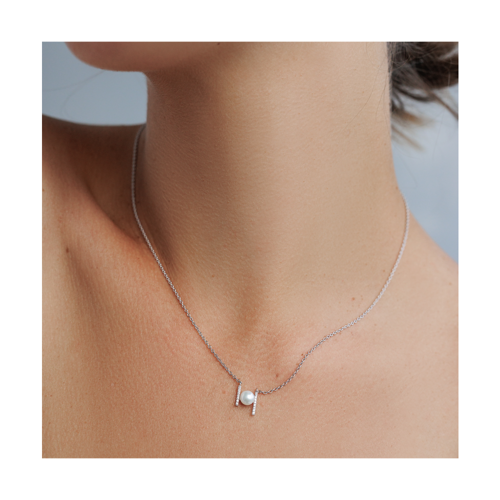 Sudraba ķēdīte ar pērļu piekariņu un cirkonijiem
