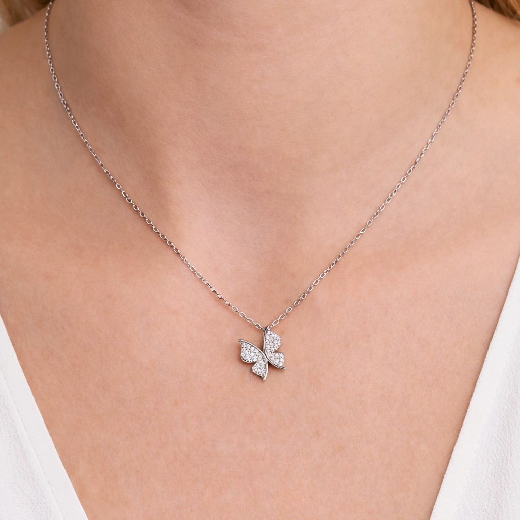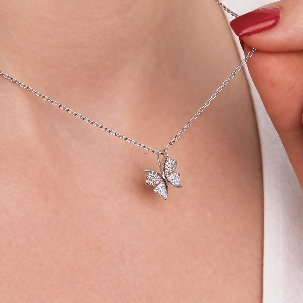 Sudraba ķēdīte ar cirkona kuloni "Taureņlaps"