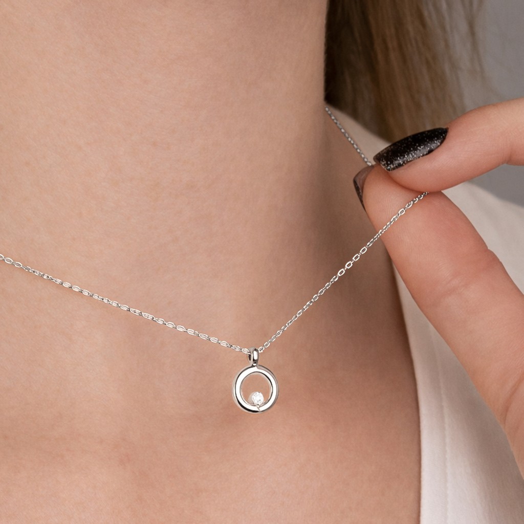Baltā Zelta ķēdīte ar briljanta piekariņu
