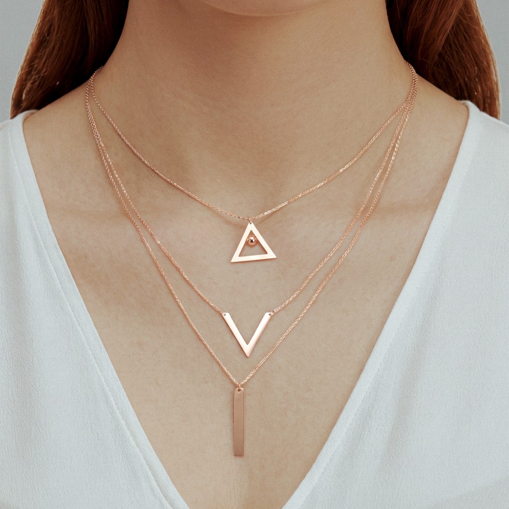 Trīskārša zelta ķēdīte ar kuloniem