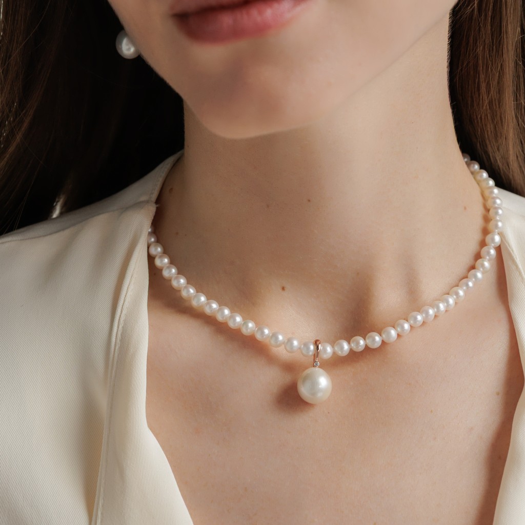 Apzeltīts sudraba kulons ar pērli un cirkoniju