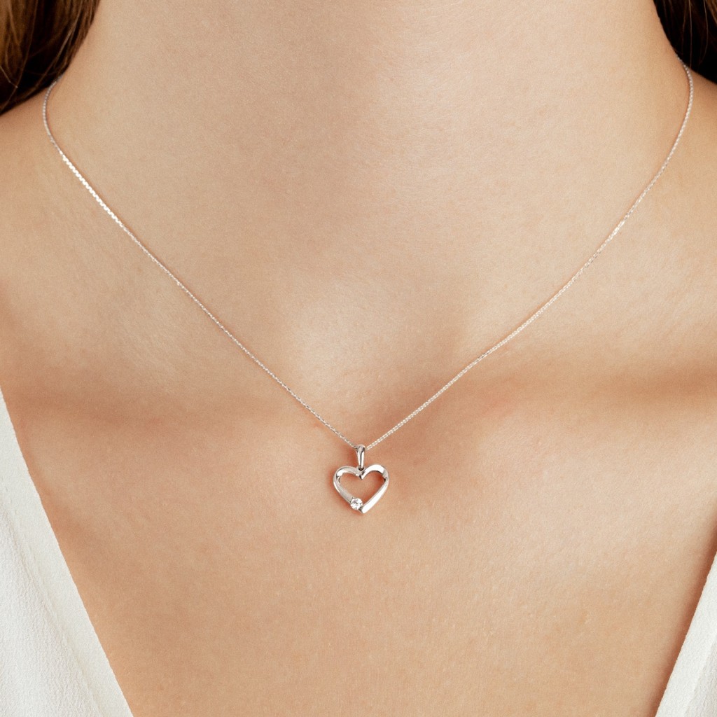Baltā zelta kulons ar dimantiem "Sirds"