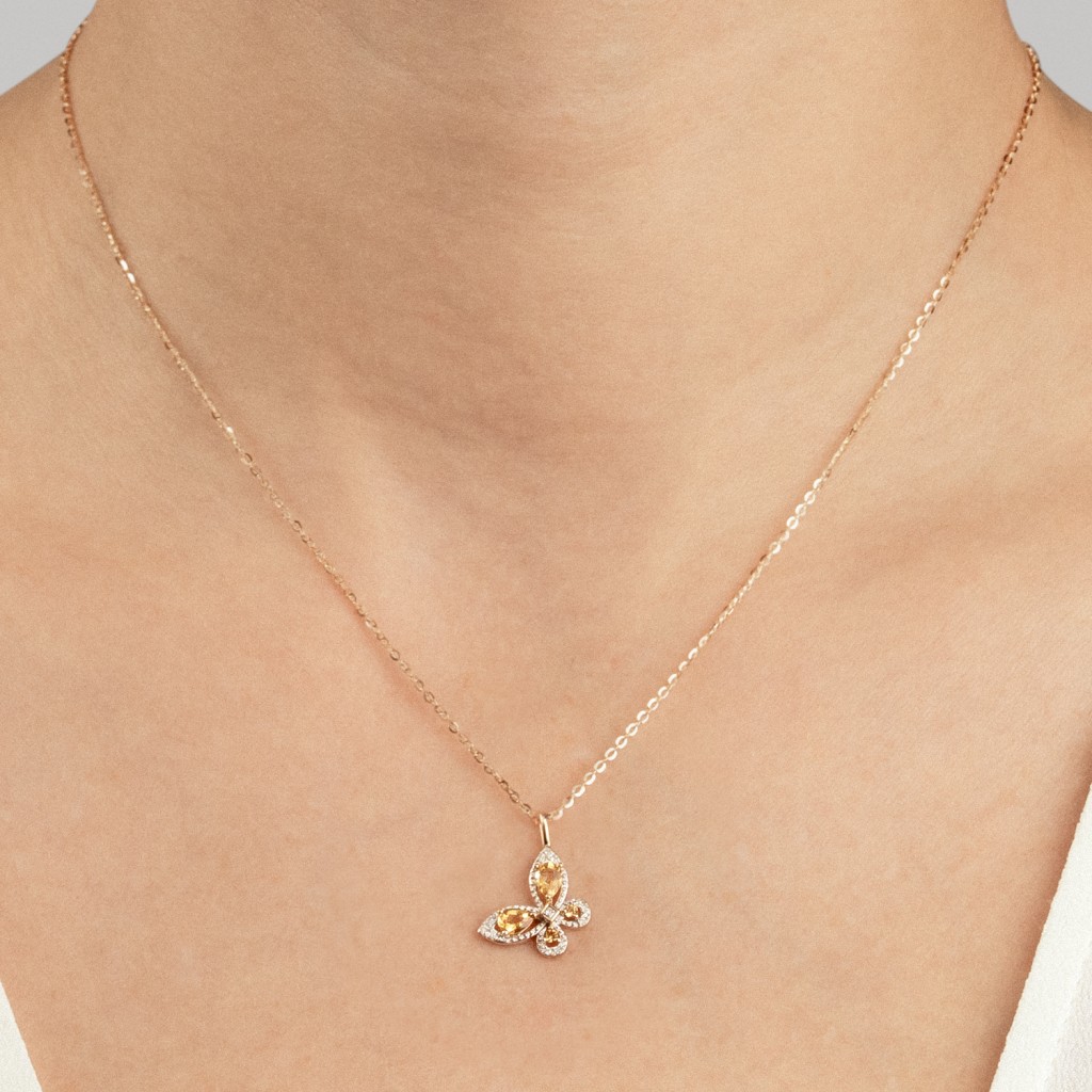 Dzeltenā zelta kulons ar dimantiem un citrīniem