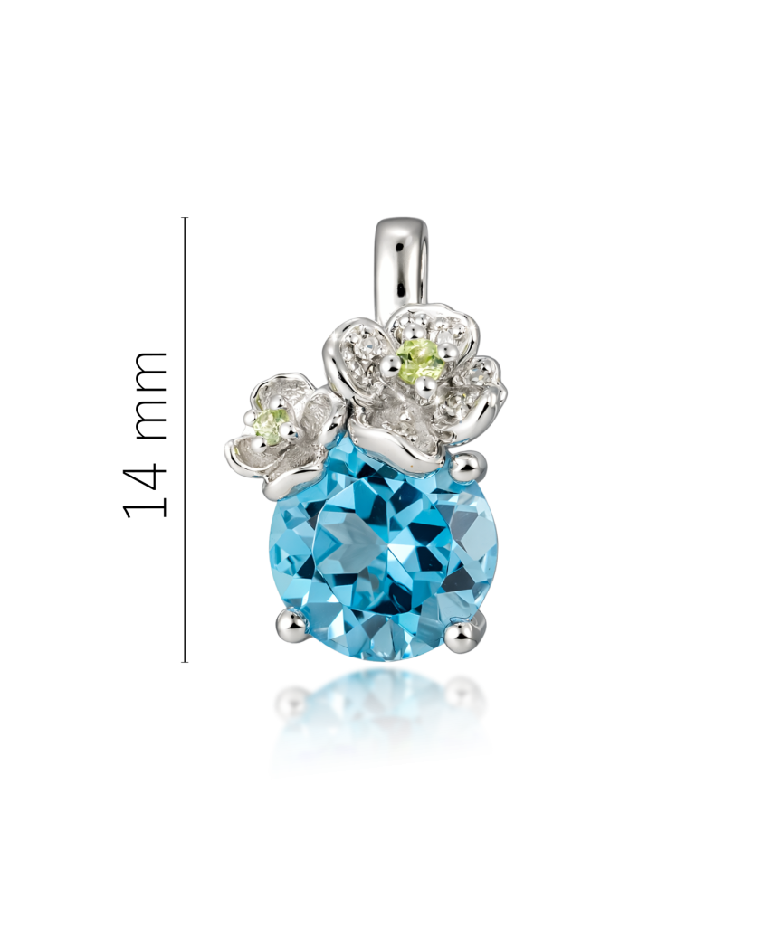 Baltā zelta kulons ar topāzu, dimantiem un peridotiem
