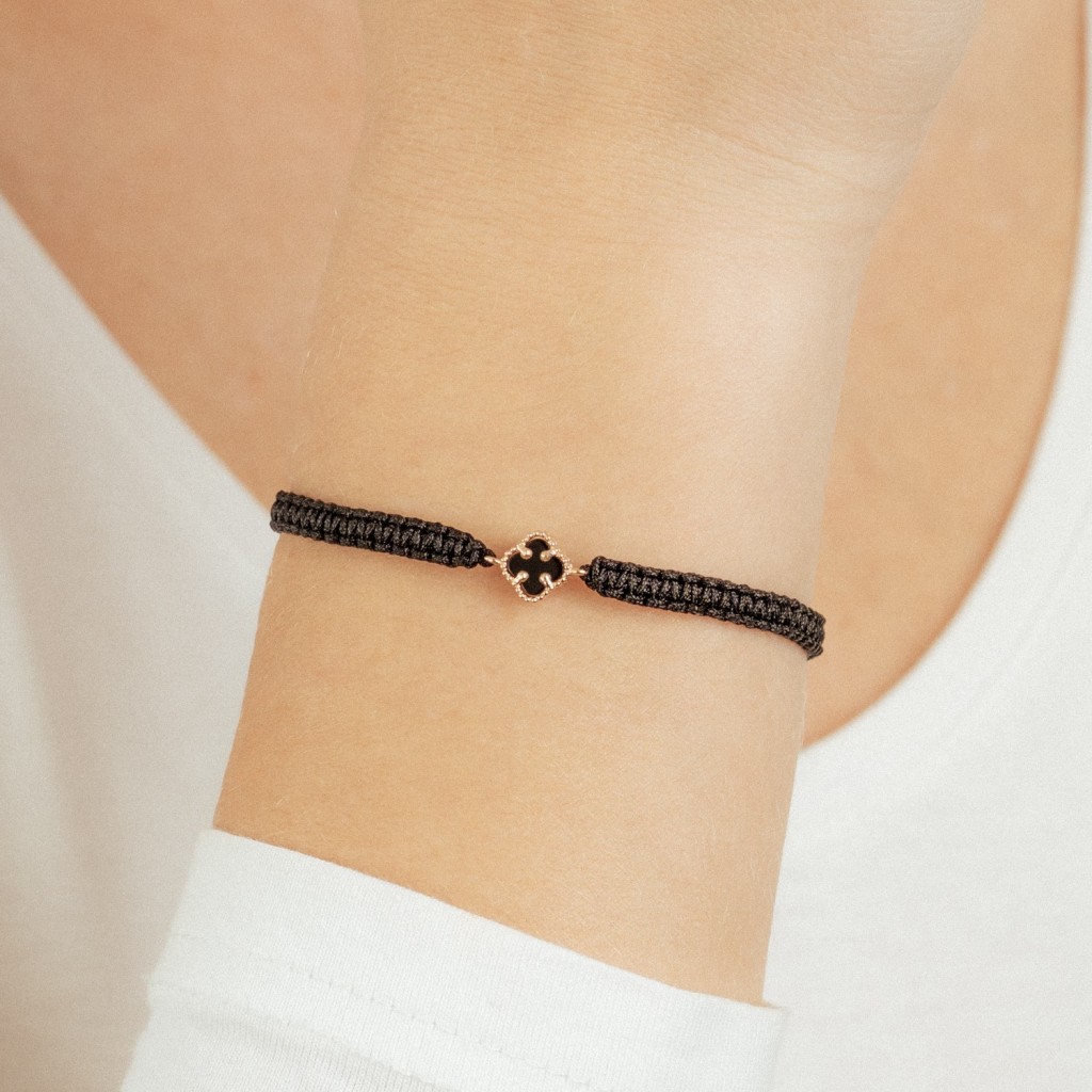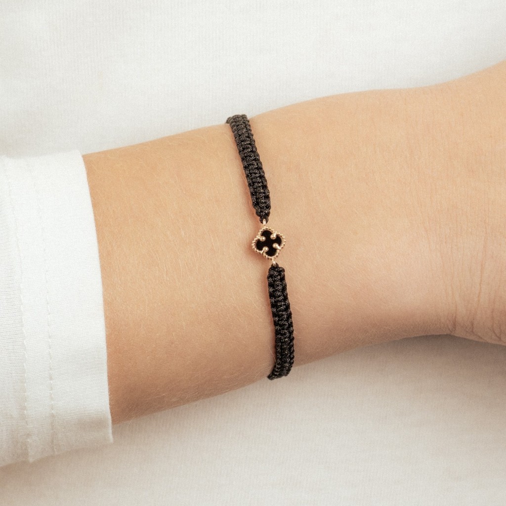 Melnā diega rokassprādze ar zeltu un oniksiem