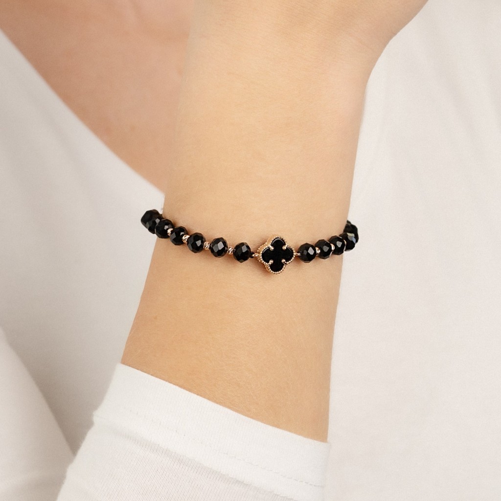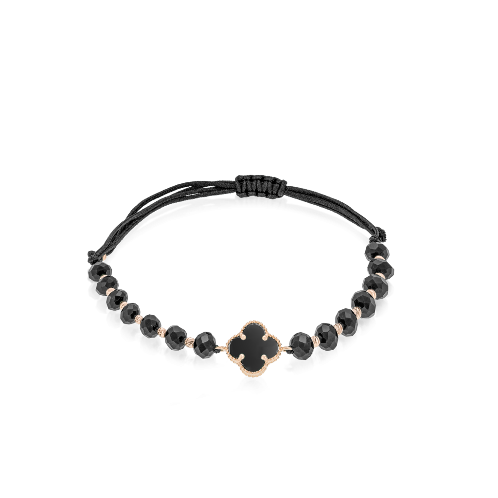 Melno Diegu Rokassrpādze Ar Zeltu Un oniksiem
