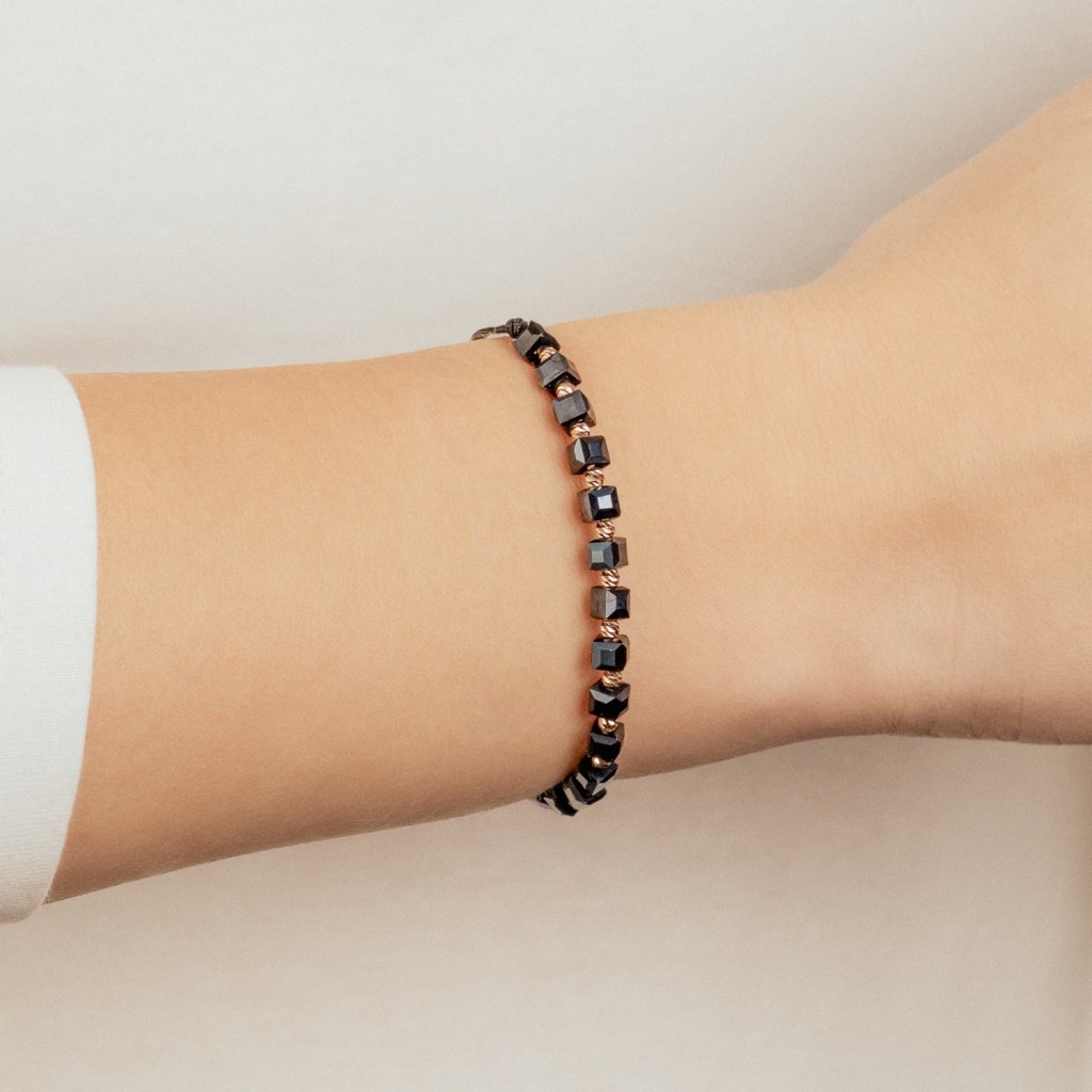 Melnu Dienu Rokassrpādze Ar Zeltu Un Hematītiem