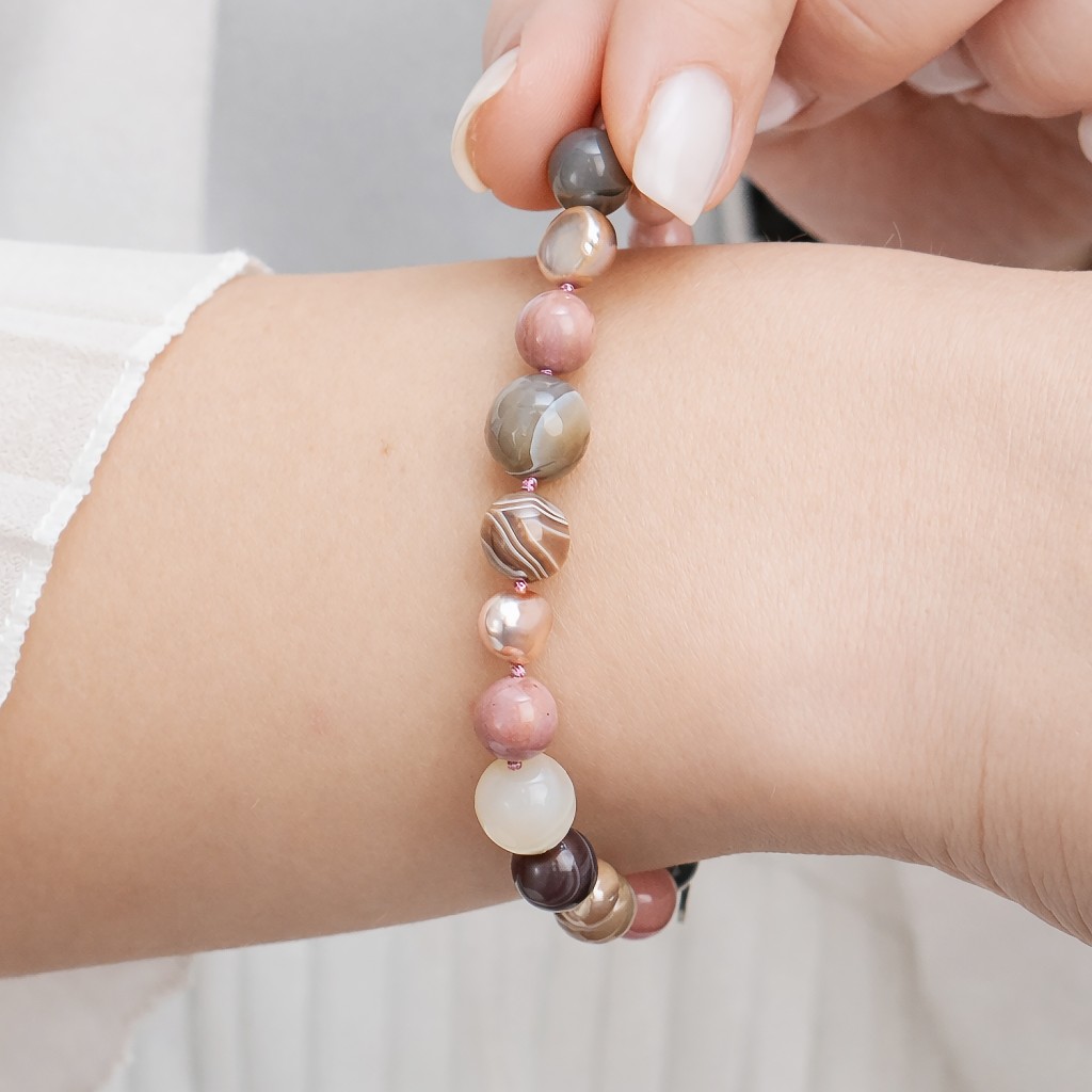 Rokassprādze ar pērlēm, ahātu un rodolītiem