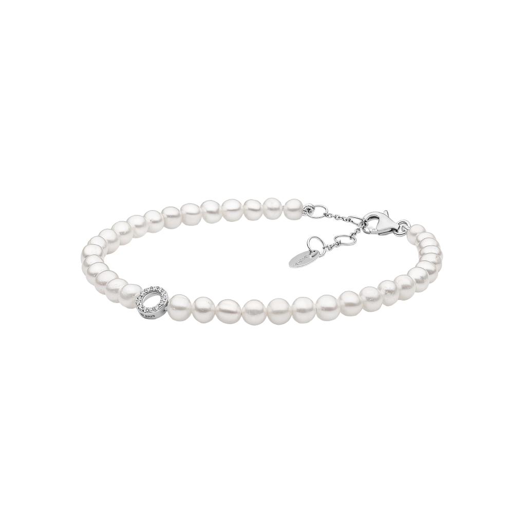 Rokassprādze ar pērlēm, cirkonijiem un sudrabu