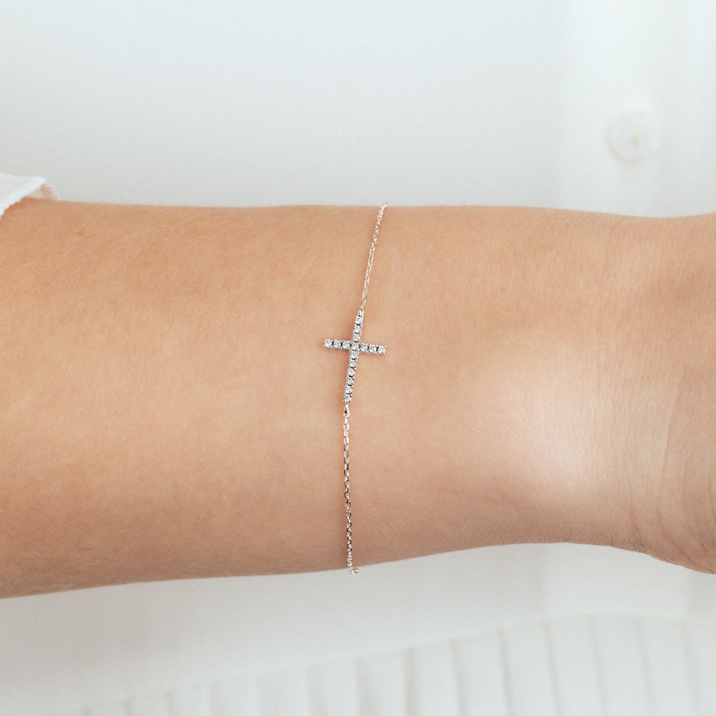Baltā zelta rokassprādze ar dimantiem “Krustiņš”