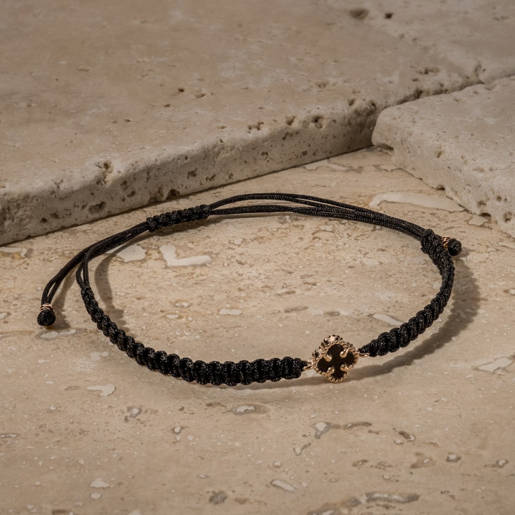 Браслет из чёрной нити с золотом и ониксами