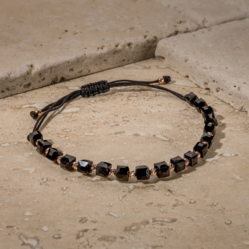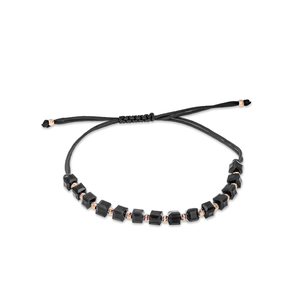 Браслет из чёрной нити с золотом и ониксами