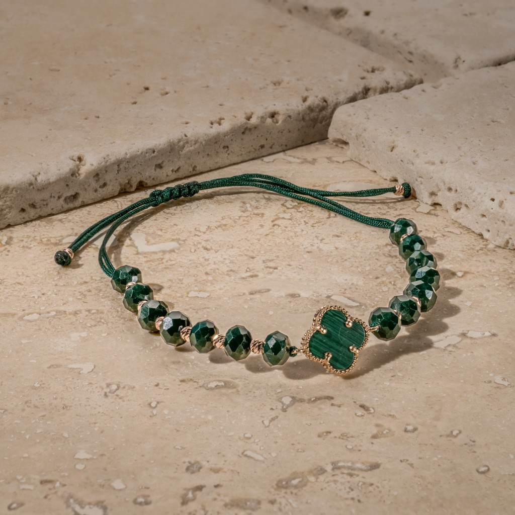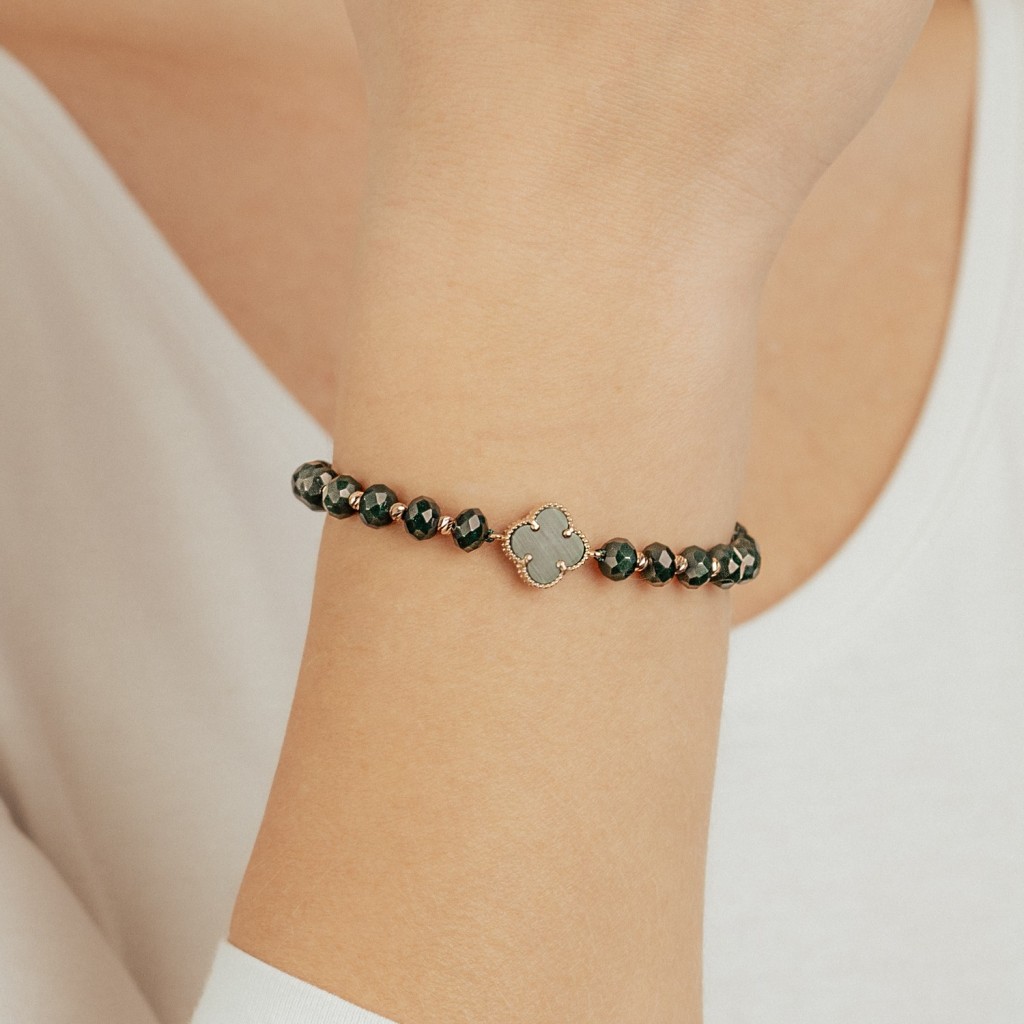 Браслет из зелёной нити с золотом и ониксом