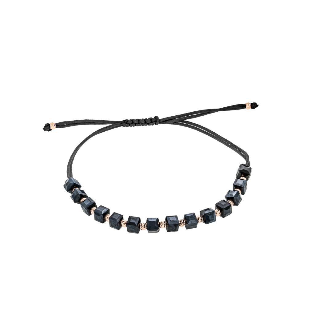 Браслет из черной нити с золотом и гематитами