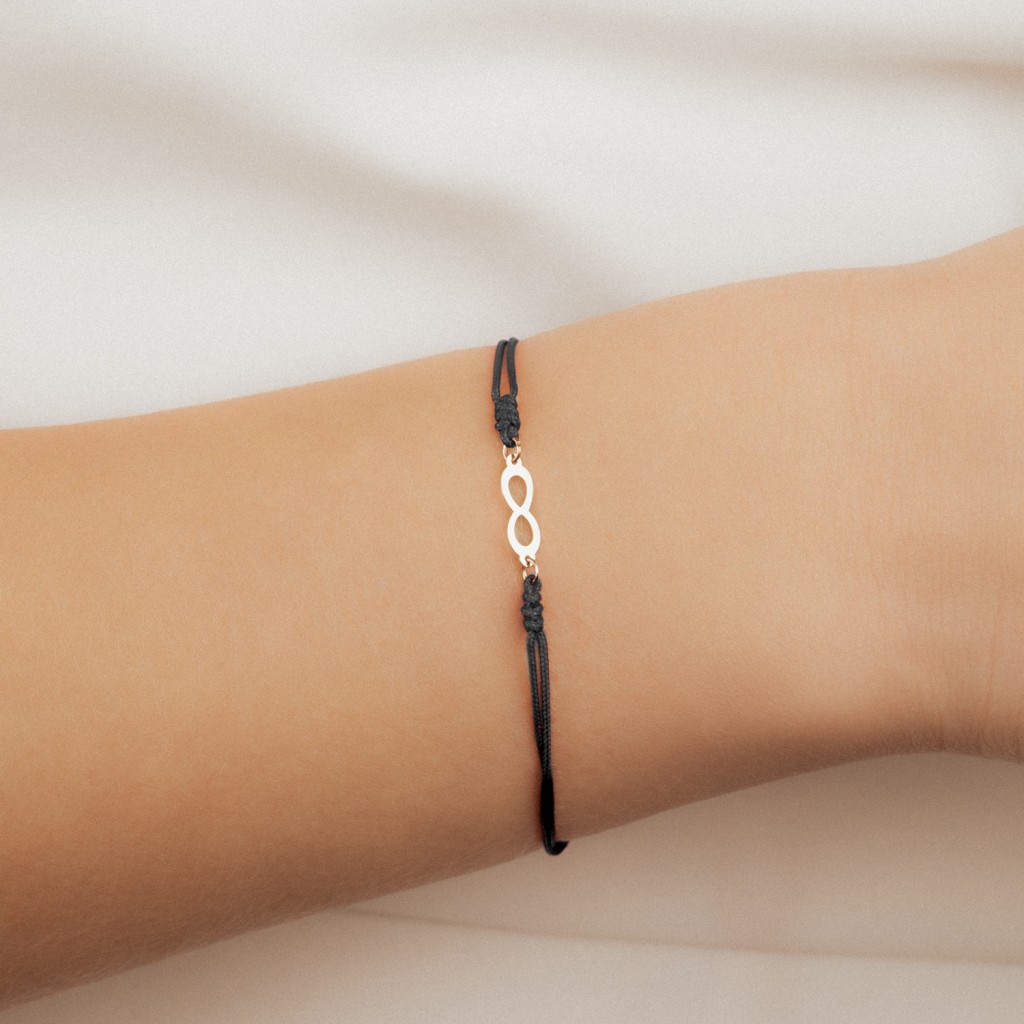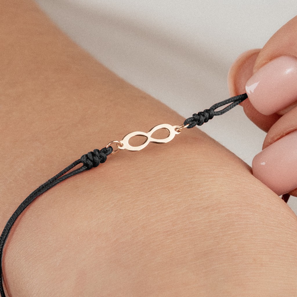 Чёрный нитяной браслет с золотым кулоном «Бесконечность»