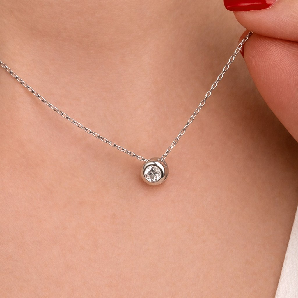 Серебряная цепочка с подвеской из циркона