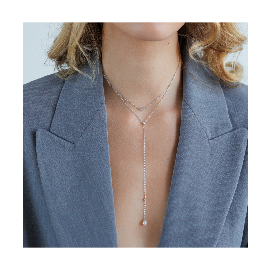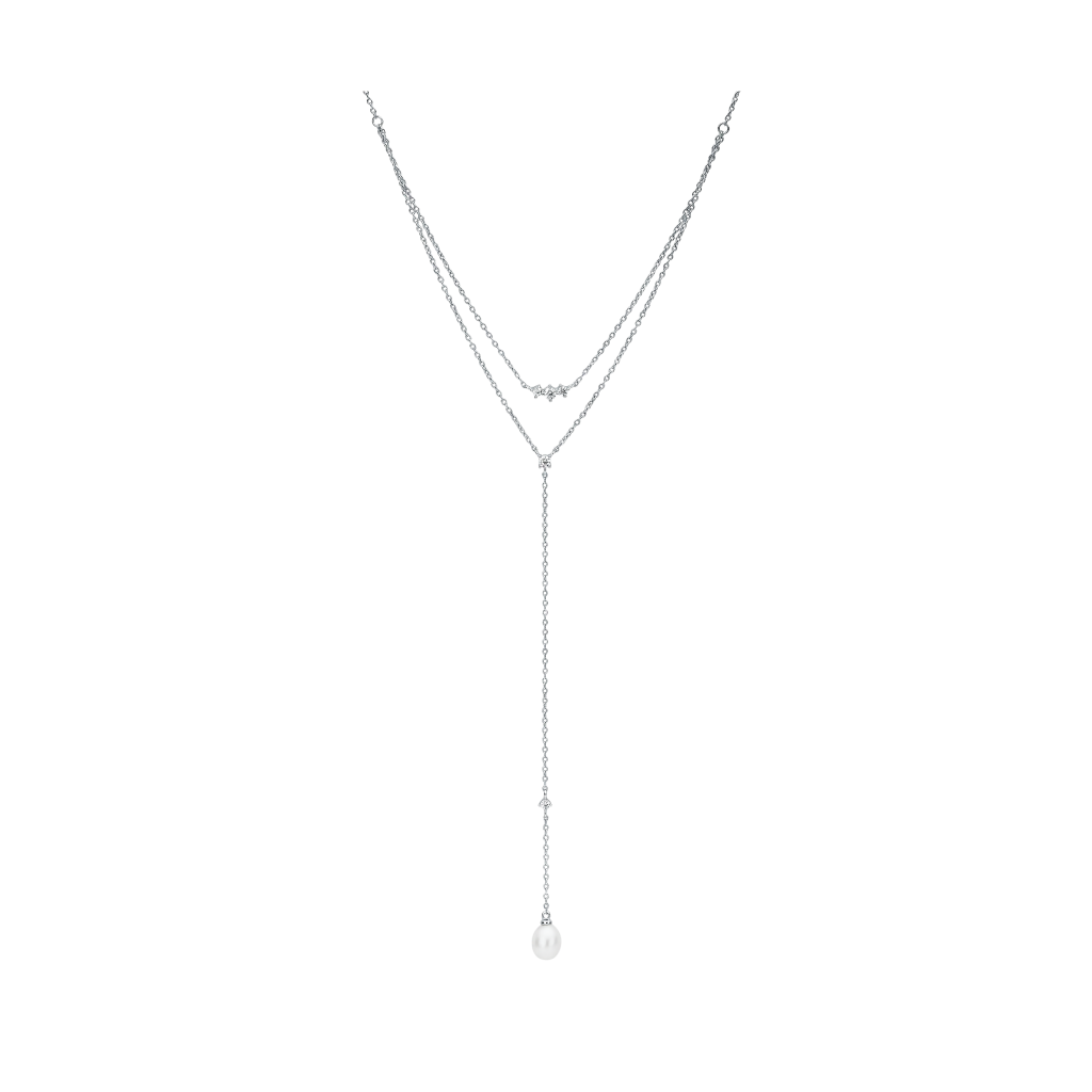 Серебряная цепочка с жемчужной подвеской и цирконами