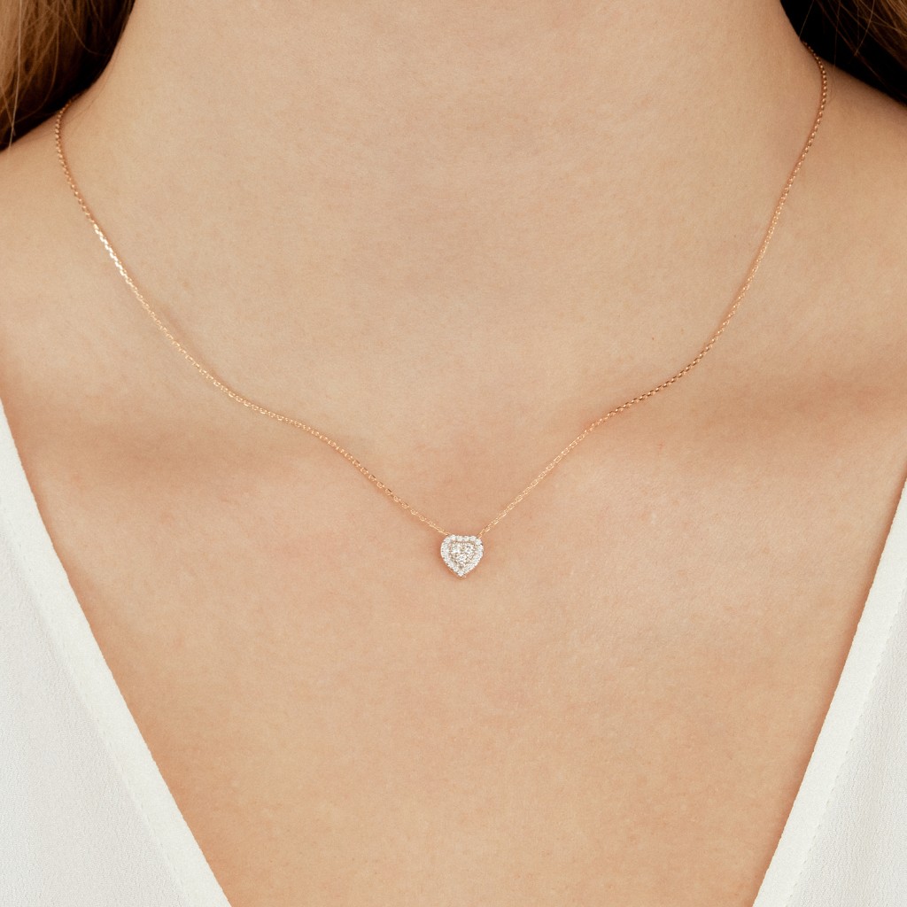 Золотая цепочка с бриллиантовым подвеской "Сердечко"
