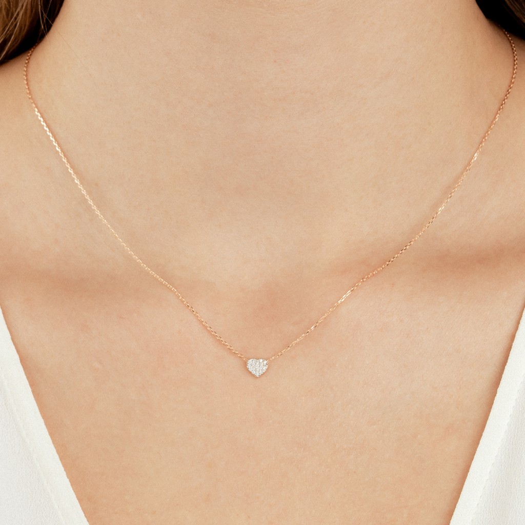 Золотая цепочка с бриллиантовым подвеской "Сердечко"