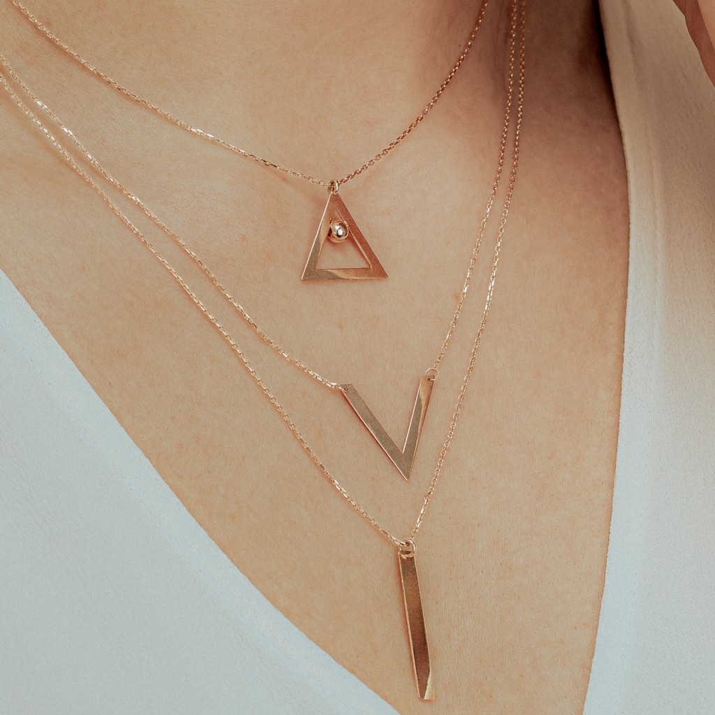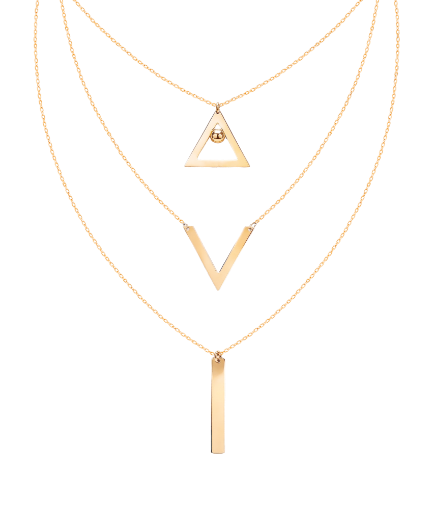 Тройная золотая цепочка с подвесками