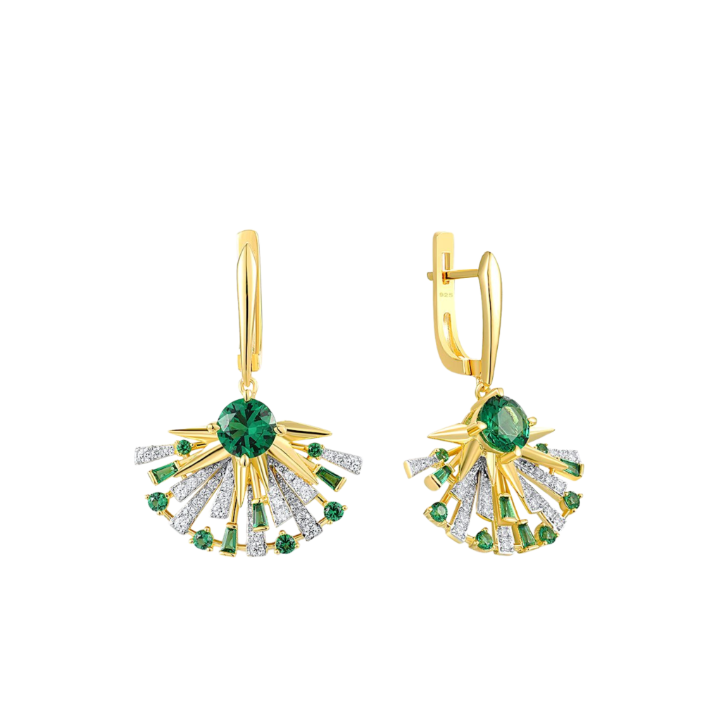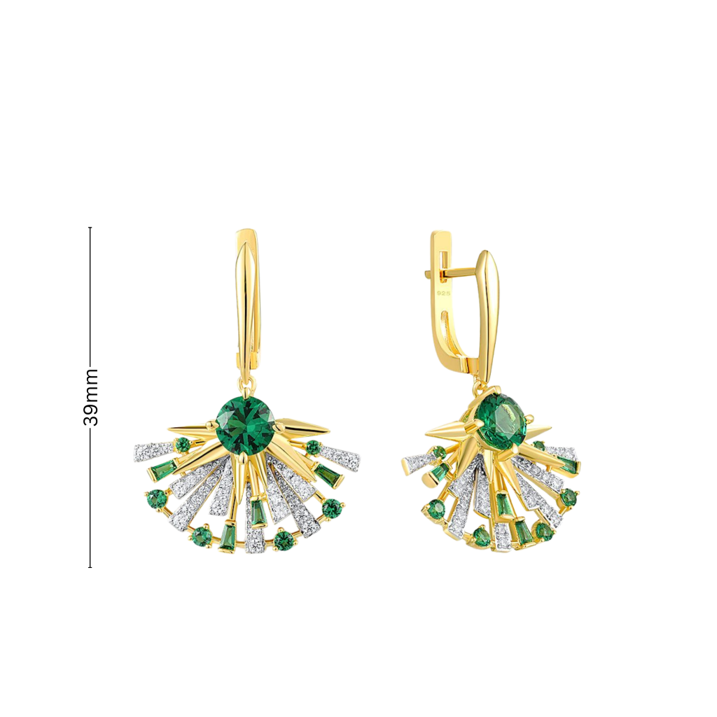 Серебряные позолоченные серьги со шпинелями и цирконами