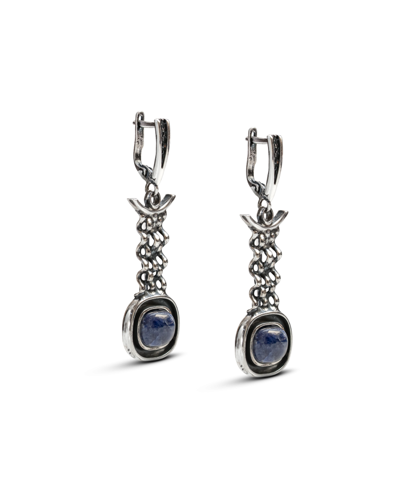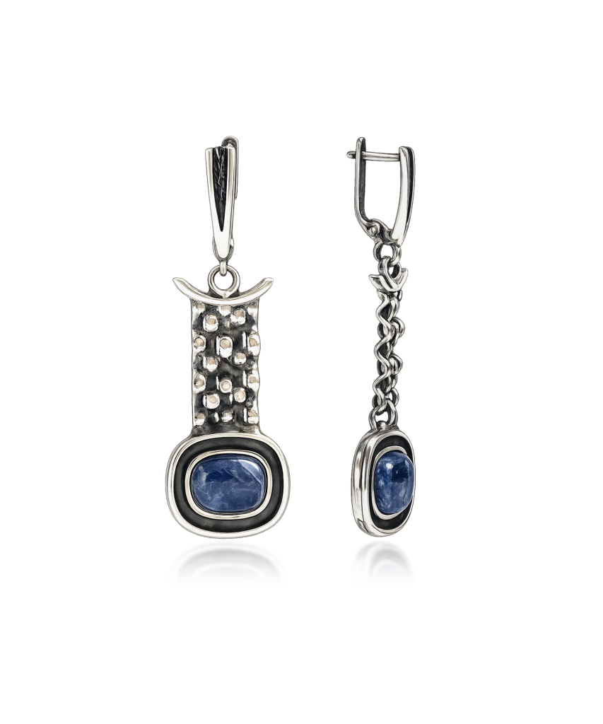 Серебряные серьги с садолитом