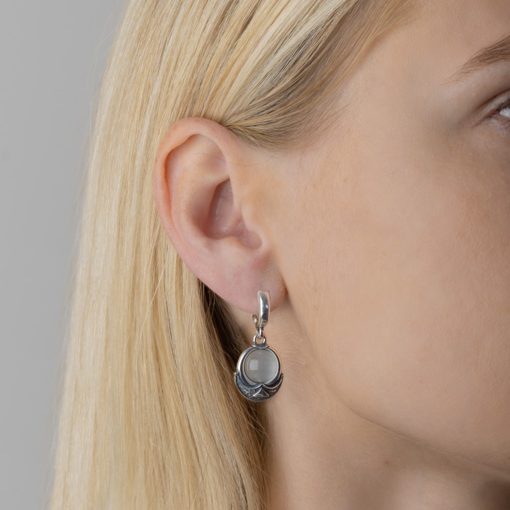 Sidabriniai auskarai su katės akies akmeniu
