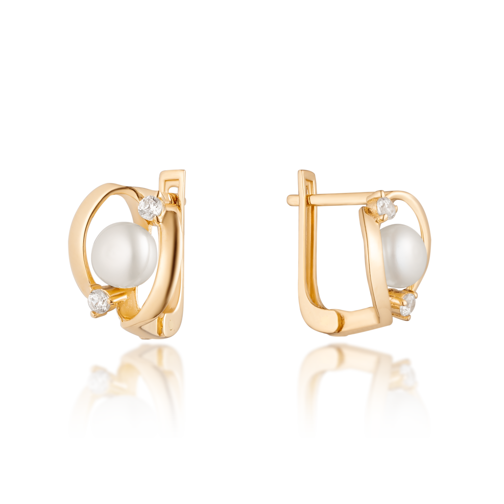 Золотые серьги с жемчугом и цирконами