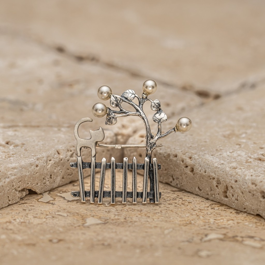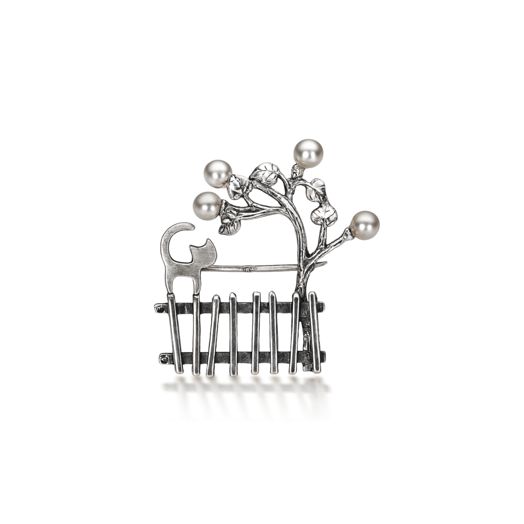 Серебряная брошь с жемчугом