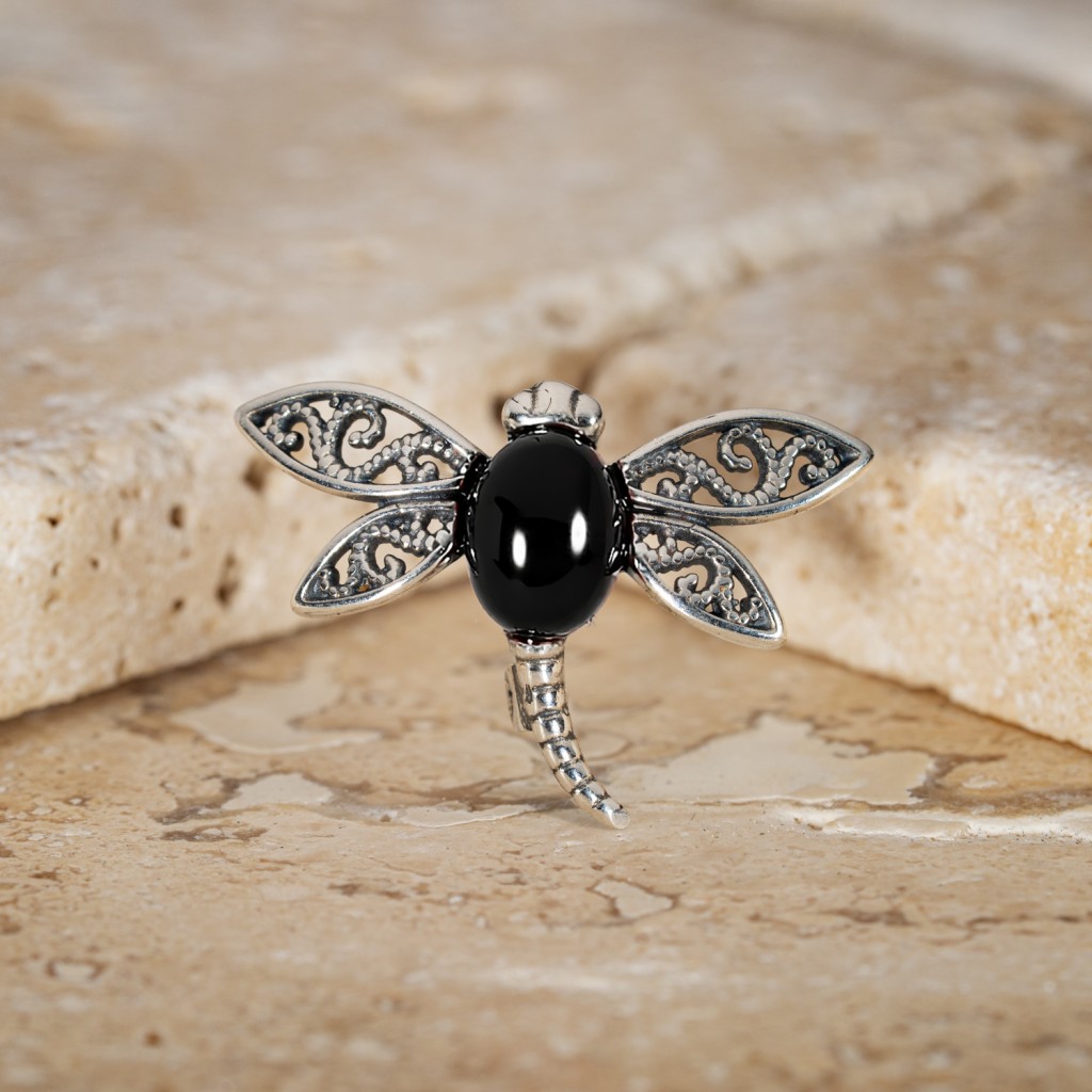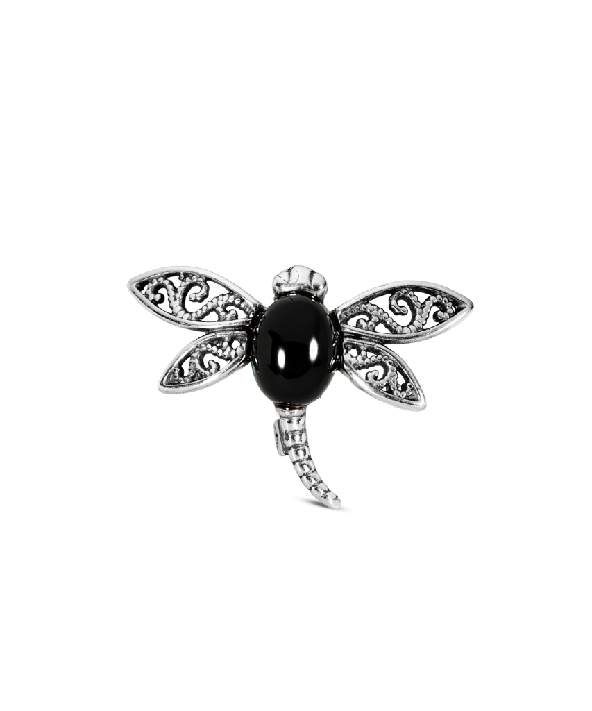 Серебряная брошь с ониксом "Стрекоза"