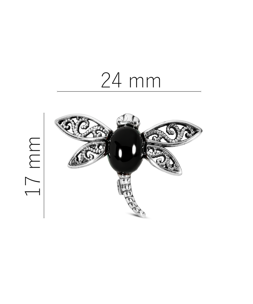 Серебряная брошь с ониксом "Стрекоза"