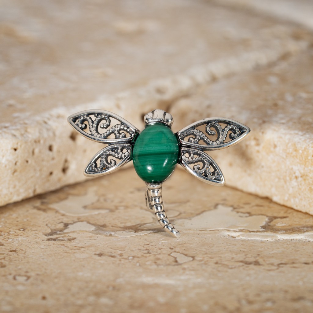 Серебряная брошь с малахитом «Стрекоза»