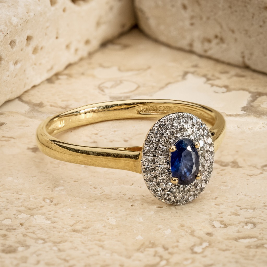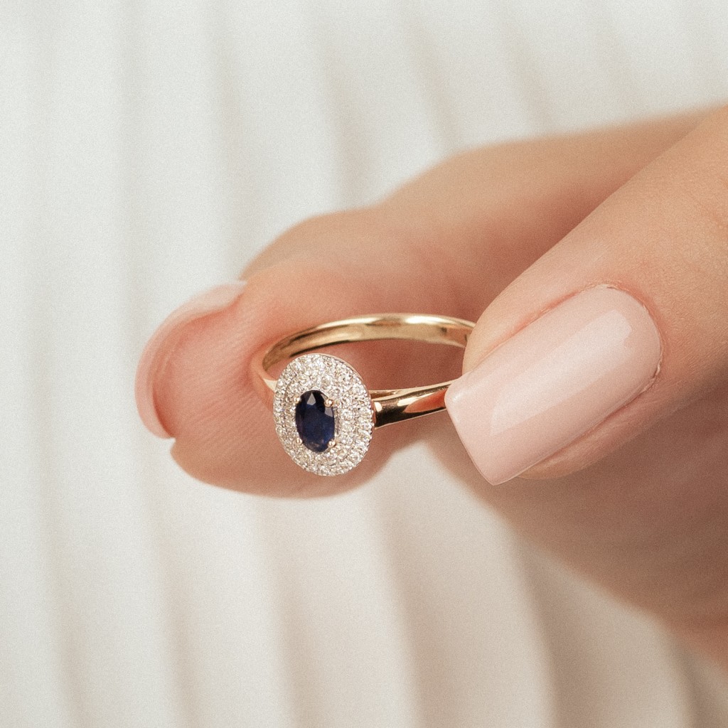Кольцо из жёлтого золота с сапфирами и бриллиантами