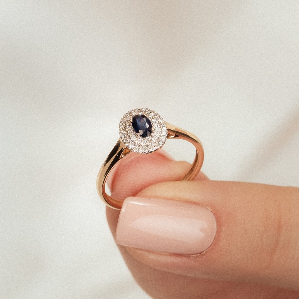 Кольцо из жёлтого золота с сапфирами и бриллиантами