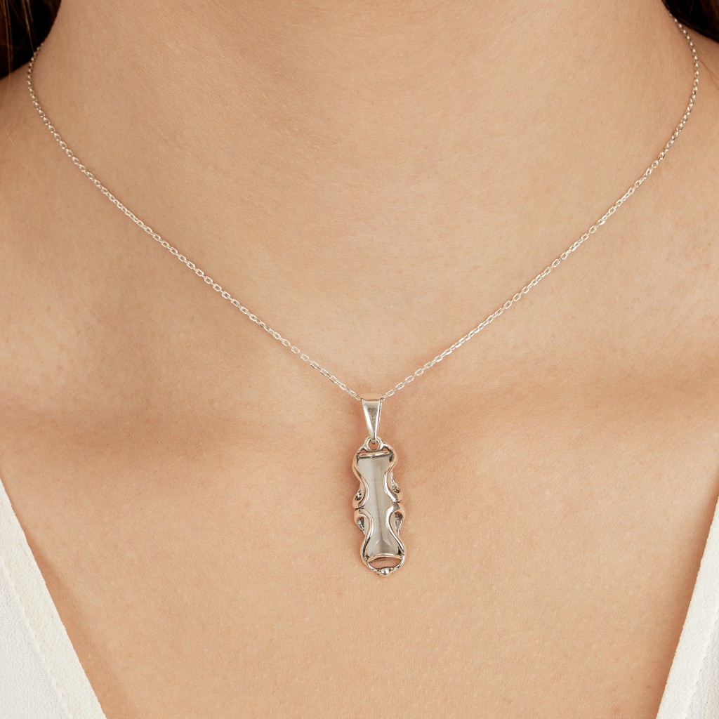 Серебряный подвеска с камнем кошачий глаз