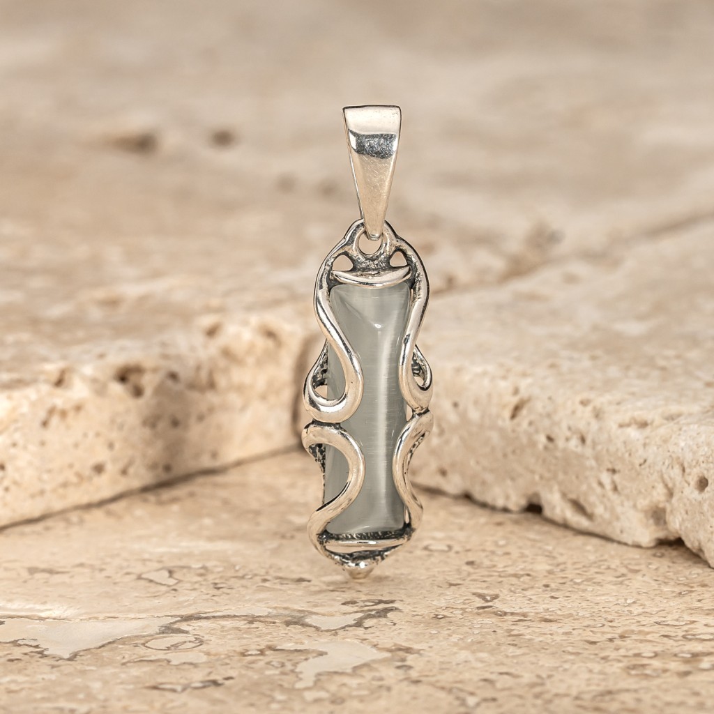 Серебряный подвеска с камнем кошачий глаз