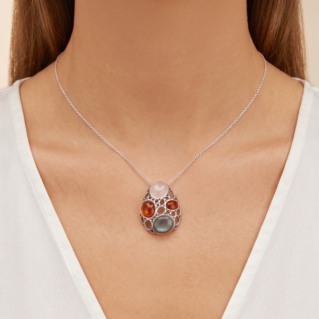 Серебряный кулон с янтарем и лабрадоритом.