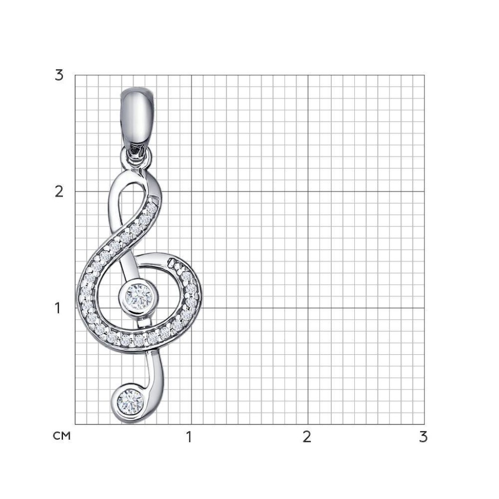 Серебряная подвеска с цирконами "Скрипичный ключ"
