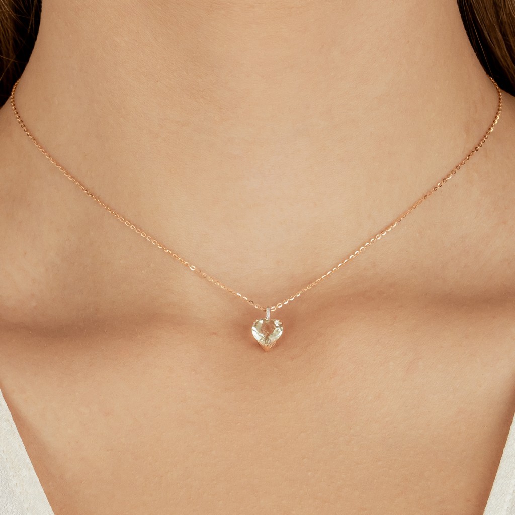 Золотой кулон с зелёным аметистом и бриллиантами
