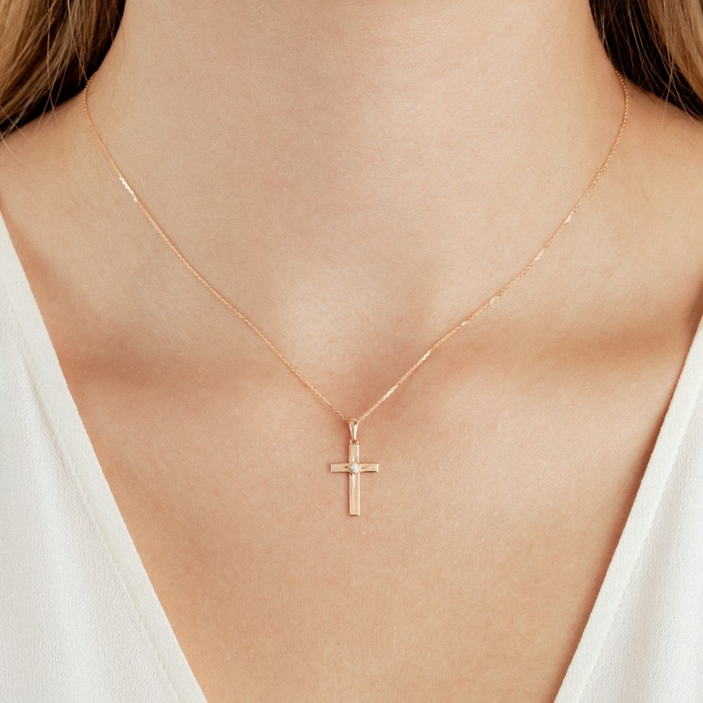 Золотой подвеска с бриллиантом "Крестик"